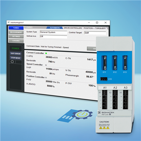 Die Parametrierung läuft vollständig automatisiert in der SPS und im Drive selbst ab und umfasst die gesamte Regelkette: die Parameter für den Stromregler, den Geschwindigkeitsregler, den Positionsregler sowie die Drehmomentvorsteuerung.