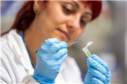Forscherin Manuela Ciocca mit einer Probe einer biohybriden Pflanze. © Matteo Vegetti | unibz