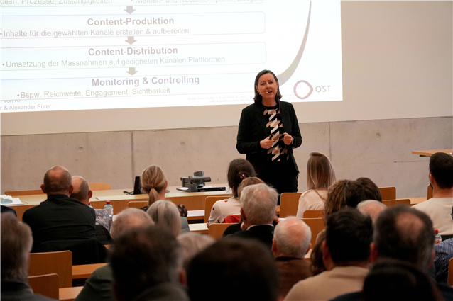 Prof. Sigrid Hofer-Fischer, Professorin für Marketing am ISM Institut für Strategie und Marketing an der OST, zeigte auf, worin sich Content-Marketing von klassischer Werbung unterscheidet. Während Werbung direkt Produkte oder Dienstleistungen bewerbe, setze Content-Marketing auf nützliche und relevante Inhalte für klar definierte Zielgruppen. Ziel sei es, Vertrauen aufzubauen und langfristige Kundenbeziehungen zu stärken. Entscheidend sei der Mehrwert der Inhalte – unabhängig davon, ob diese als Blogbeitrag, Newsletter, Video oder Podcast veröffentlicht würden.