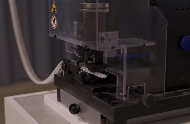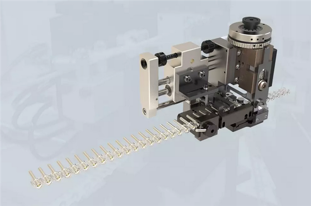 Es gibt derzeit zwei Wege der Kontaktzuführung zu Crimp-Automaten: Einer führt über die Vereinzelung der Kontakte in Rütteltöpfen, der andere über entsprechend vorbereitete Kontaktbänder, die von einer Spule in den Automaten eingezogen werden. Das zweite Verfahren ist schneller, bislang standen dafür allerdings nur Bänder mit gestanzten Kontakten zur Verfügung. HARTING hat deshalb ein Wechselwerkzeug für Crimp-Halb- und Vollautomaten entwickelt, mit dem sich hochwertige gedrehte Han® Kontakte auf Rolle verarbeiten lassen. Neu ist der Kunststoffgurt: Er ermöglicht den festen Sitz und die exakte Positionierung der Kontakte in der Verarbeitung. Verfügbar sind entsprechende Lösungen für Leiter-Querschnitte von 0,14 bis 6 mm². Das HARTING Wechselwerkzeug eignet sich für gängige Halb- und Vollautomaten u.a. der Hersteller Schäfer, Komax und Schleuniger.