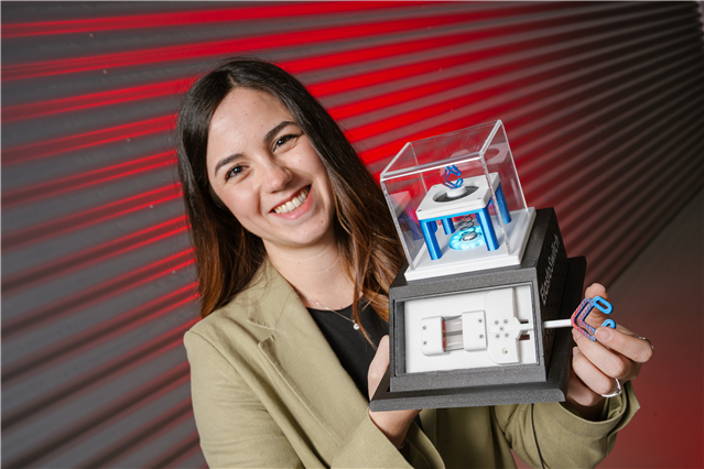 Seit Jahren entwickeln Motzki und sein Team die smarten Folien so weiter, dass sie immer schneller und empfindlicher reagieren. So entstehen energieeffiziente Minimotoren, die Bewegungs-Choreografien absolvieren oder auch kräftig bestimmte Positionen halten. Sie bauen mit ihnen verschiedenste Prototypen, ob als fühlbare zweite Haut in Kleidungsstücken, als virtuelle Tasten, die auf Displays an die Fingerspitzen drücken, als Pumpen und Ventile oder sogar ultraleichte Lautsprecher. Energie verbrauchen die Folienmotoren nur, wenn sie in Aktion treten, nicht, wenn sie eine bestimmte Stellung halten.