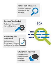 Triviale, aber oft aufwendig zu findende Fehler lassen sich mit Einsatz der SCA verhindern, das Team wird entlastet, Produktivität und Softwarequalität steigen und das nicht nur bei der Erstellung, sondern auch bei der Wartung.
