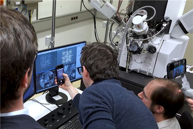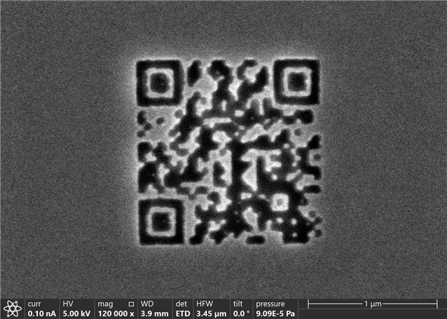 Mit fokussierten Ionenstrahlen fräste das Team den QR-Code in eine dünne keramische Schicht. Die einzelnen Bildpunkte sind nur 49 Nanometer groß – eine einzige Wellenlänge sichtbaren Lichts ist ungefähr zehnmal größer. Der Code ist somit absolut unsichtbar, seine Details sind mit sichtbarem Licht physikalisch nicht aufzulösen – ähnlich wie es für den dicken Fuß eines Elefanten prinzipiell unmöglich ist, Brailleschrift zu ertasten. Doch mit einem Elektronenmikroskop zeigte sich: Der QR-Code kann tatsächlich zuverlässig ausgelesen werden.