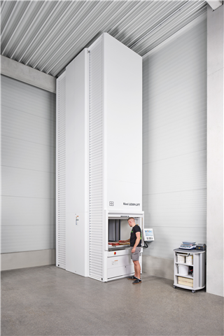 Die im Lift eingesetzten Hänel Multifunktionscontainer ermöglichen durch das integrierte Raumspar-Raster eine besonders kompakte Lagerung verschiedenster Artikel. So wird das verfügbare Lagervolumen optimal genutzt und selbst empfindliche Bauteile sind im geschlossenen System zuverlässig vor Staub, Schmutz und unbefugtem Zugriff geschützt.