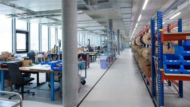 Die technische Umsetzung zeigt, wie konsequent dieser Anspruch verfolgt wird. 28 Erdsonden liefern nicht nur Heizenergie, sondern ermöglichen auch das Free Cooling im Sommer. Auf dem Dach produziert eine Photovoltaikanlage mit 550 kWp einen Grossteil des hierfür benötigten Stroms. Gleichzeitig wird die Abwärme aus den Kompressoren in den Produktionsanlagen zurückgewonnen und in die Heizung eingespeist. Selbst die Abluft der Gebäudehülle wird über Wärmetauscher genutzt, um Energieverluste so gering wie möglich zu halten.